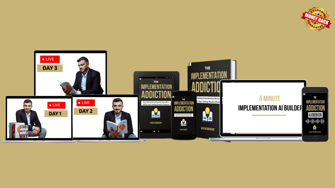 The Implementation Addiction Ebook + Audiobook + 5 Minute Implementation AI Builder + 3 Day Live Read To Succeed Challenge | 5:30 am to 7:00 am